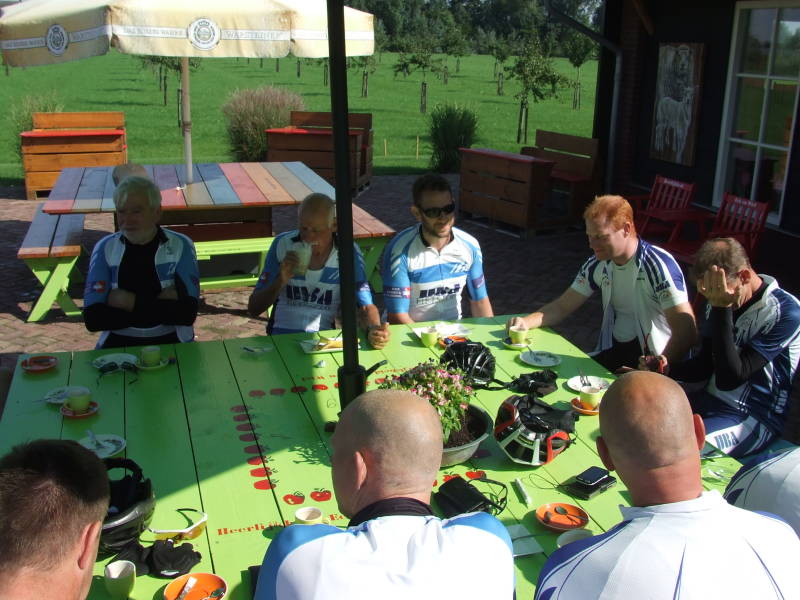 De eerste foto's na het resetten van het fototoestel zijn genomen tijdens de koffiestop bij Brasserie de Vuurtoren in Nijkerk. We hadden er toen inmiddels 63 km opzitten dus het bakkie smaakte best.