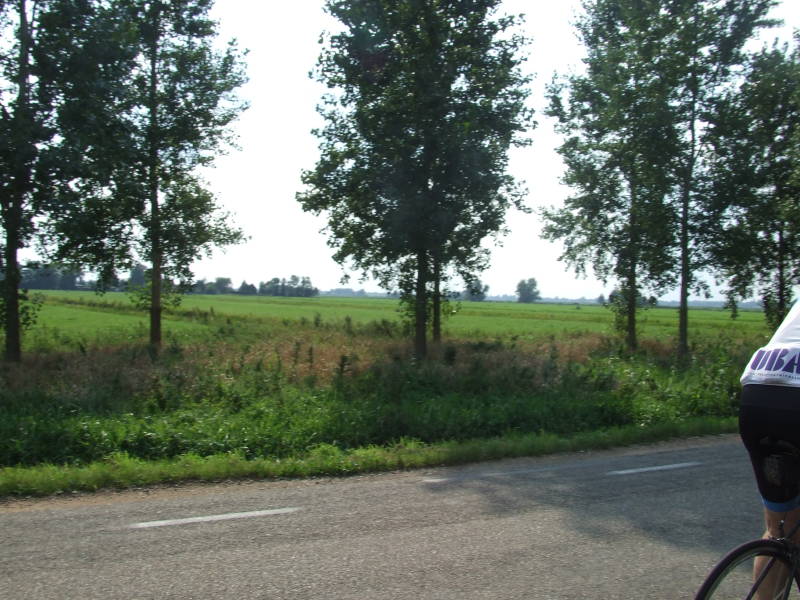 Zoals gezegd, kwart over negen gestart, bij Botshol even verkeert gereden maar al snel weer op het juiste spoor. Via Abcoude, langs de Gein, Weesp bij Muiden over de Hollands brug langs de randmeren, Rijdend langs het Eem-meer konden we de regenbuien boven de Utrechtse heuvelrug zien hangen, zouden we dan toch de juiste keuze hebben gemaakt om vandaag over de "Noord"te fietsen. Net over de brug bij Nijkerk smaakte, na 63 km de koffie prima.